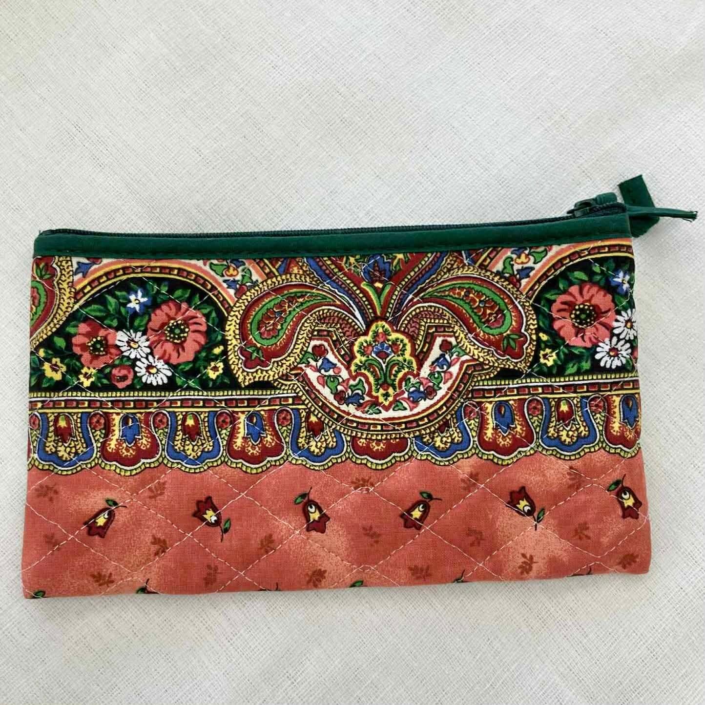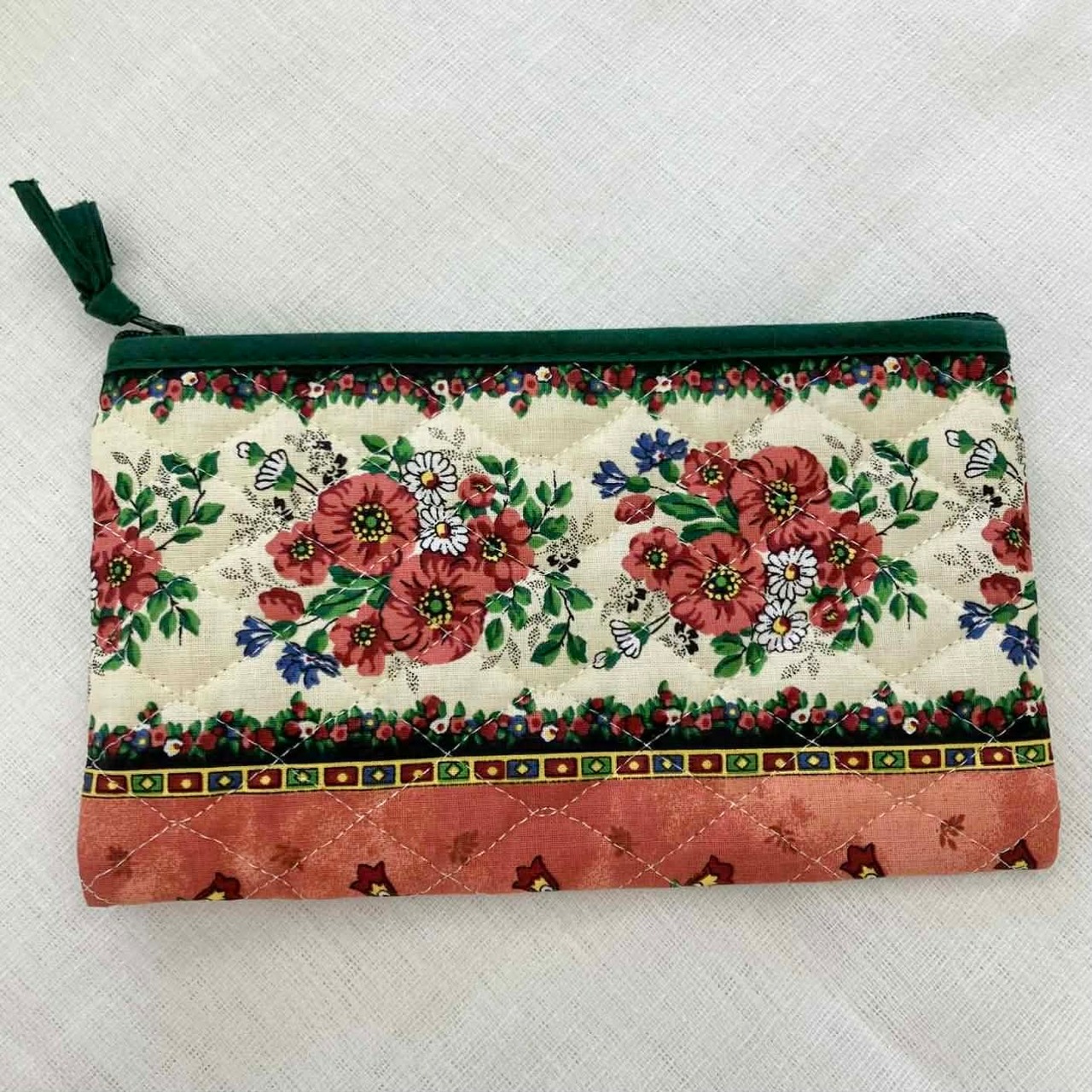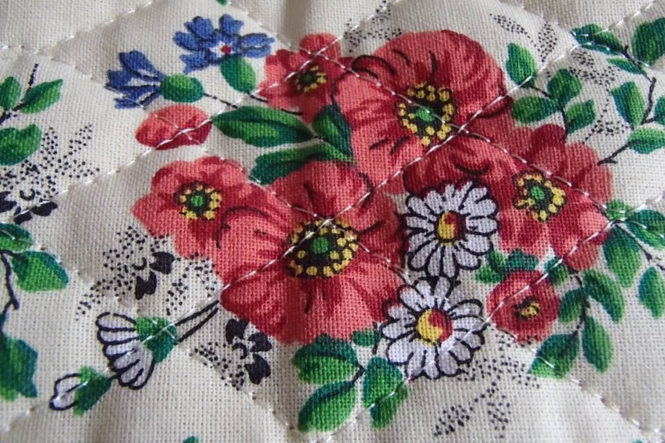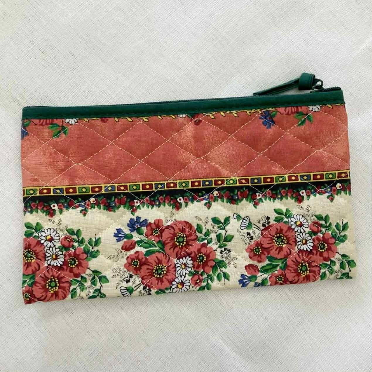 表地はキルティング仕立てで、やわらかさの中にほどよい厚みがあります。内側には落ち着いた色味の生地を合わせ、外側の華やかさとのコントラストを楽しめるつくりになっています。
