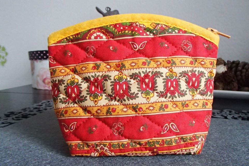 南仏の暮らしを感じさせる、ソレイアードの生地を使ったコスメポーチです。
